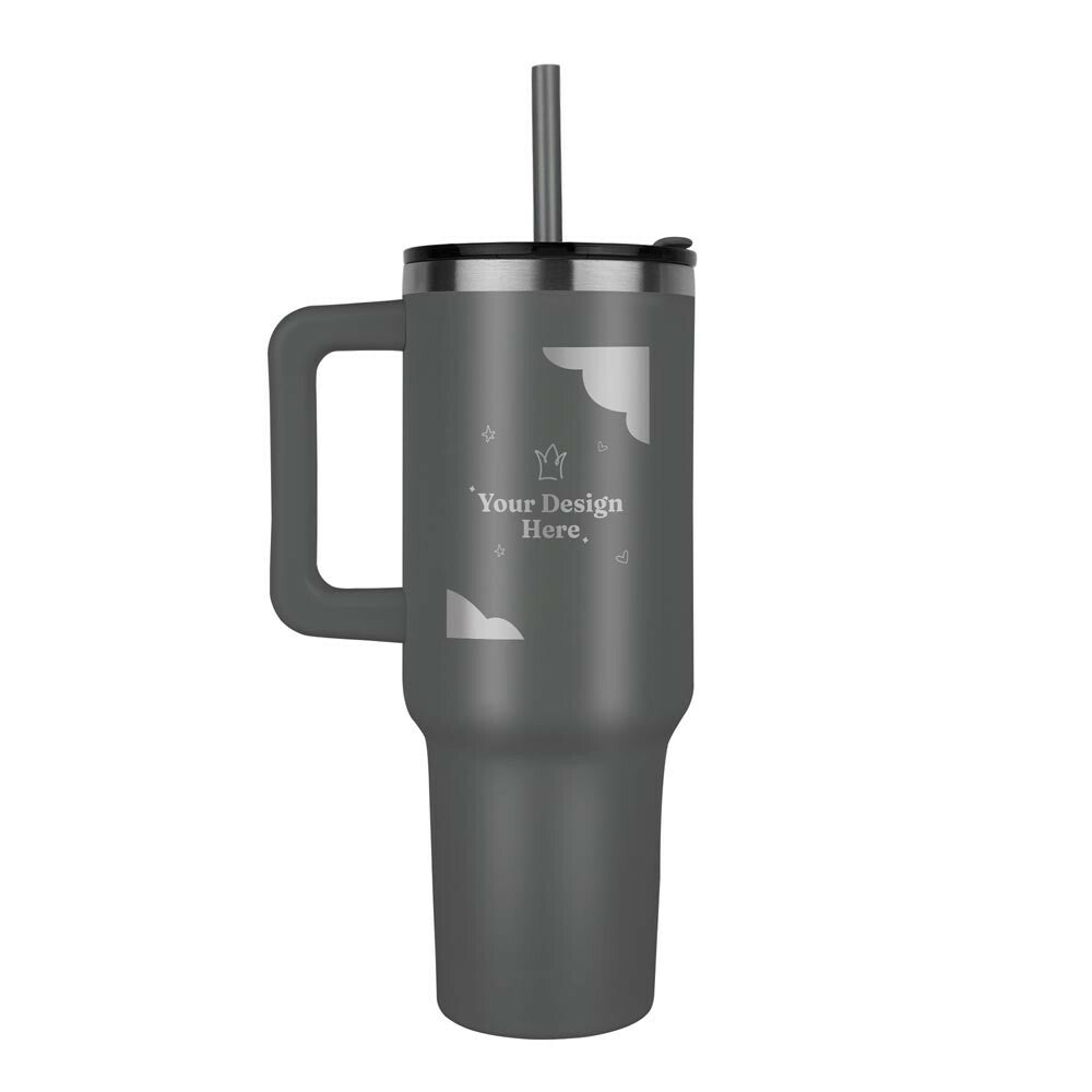 Looking for the ultimate hydration companion? Elevate your hydration game with the Pinnacle 40oz Tumbler, laser-engraved for an elegant blend of style and performance. Crafted from premium stainless steel, this tumbler features advanced copper vacuum insulation to keep drinks cold for over 24 hours or hot for over 9 hours. The sleek matte finish, matching handle, and spill-proof lid offer a luxurious look and feel, while the slim base ensures it fits in most car cup holders, making it perfect for on-the-go hydration.